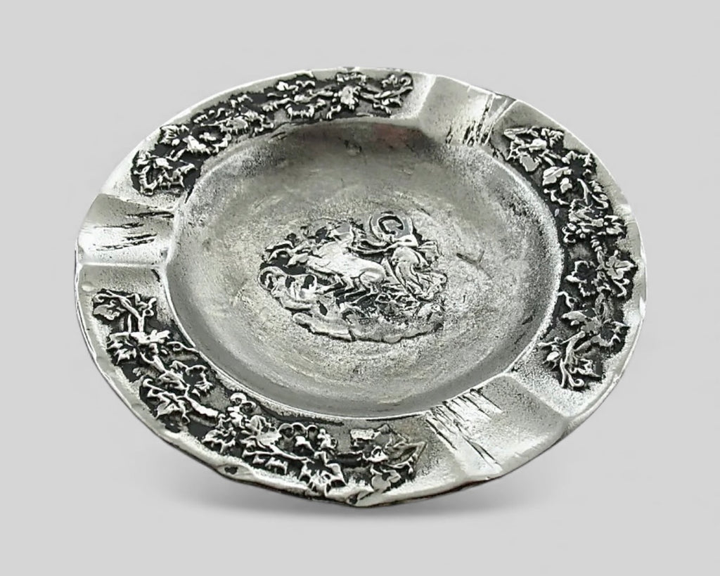 Introducing the handcrafted white bronze vessel from Jelena Behrend Studio—a testament to quiet luxury and timeless elegance. This round piece features intricate, raised designs meticulously textured to evoke a beautifully aged appearance. Delicate details adorn its edges and center, showcasing the artistry inherent in all Jelena Behrend creations. Measuring 4 3/8 inches in diameter, this exquisite object will elevate your home's ambiance with its distinguished presence. Solid White Bronze Ashtray