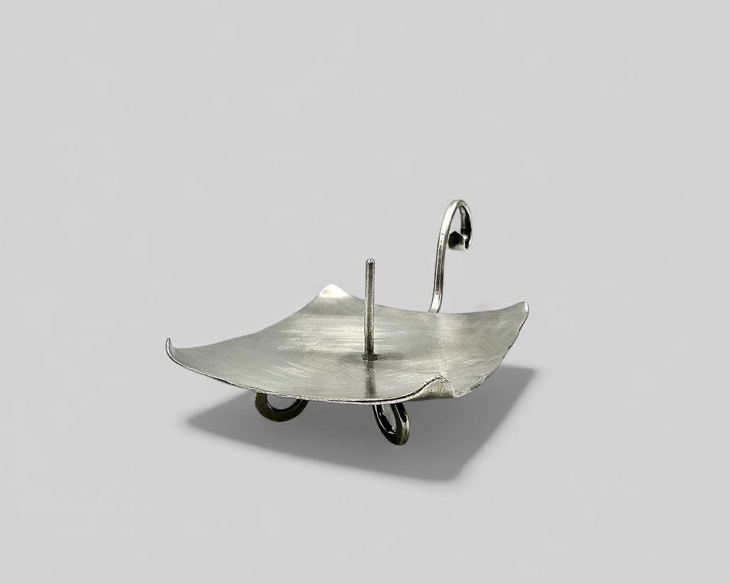 Each object for light is individually forged in solid sterling silver, one at a time. Every curve bears the mark of the maker’s hand — a quiet record of process and intention. The form is intimate and substantial, approximately 1.75" x 1.75", rising to 2.25" at the gently arched handle. The curve of the handle adds both grace and gesture, transforming utility into poetry.