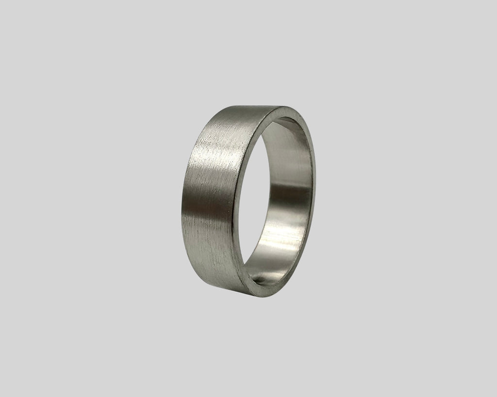 Hand-forged in noble platinum, the 6mm-wide Jiou wedding band embodies a union of ancient technique and modern refinement. Each piece is meticulously crafted and superbly hand-finished with a distinctive snow-like texture that enhances platinum’s natural luminosity. The minimalist design—defined by clean lines and a quietly modern sensibility—showcases the intrinsic beauty of this rare and enduring metal.